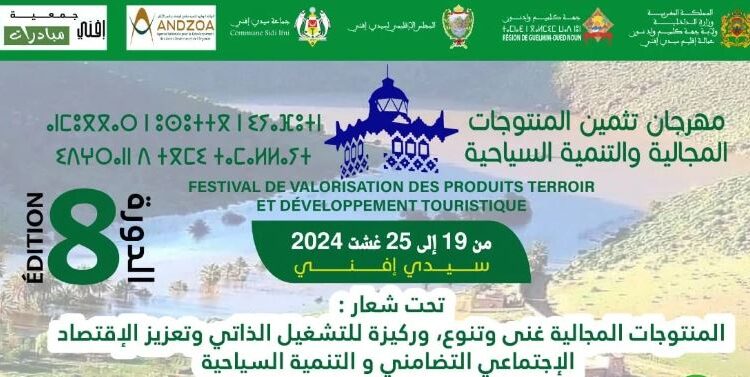 تحتضن مدينة سيدي إفني فعاليات الدورة الثامنة لمهرجان تثمين المنتوجات المجالية في الفترة من 19 إلى 25 أغسطس 2024 تحت شعار “المنتوجات المجالية: غنى وتنوع، وركيزة للتشغيل الذاتي، وتعزيز الاقتصاد الاجتماعي التضامني والتنمية السياحية”.
