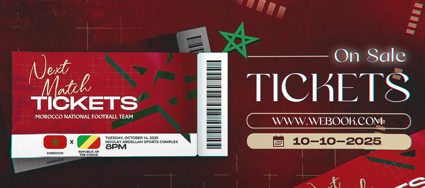 أعلنت اللجنة المنظمة للمباراة التي سيخوضها المنتخب الوطني الأول أمام منتخب الكونغو، والمقرر إجراؤها الثلاثاء 14 أكتوبر 2025 على أرضية ملعب الأمير مولاي عبد الله بمدينة الرباط ابتداء من الساعة الثامنة مساء برسم اقصائيات المنطقة الإفريقية لنهائيات كأس العالم فيفا 2026، عن انطلاق عملية بيع التذاكر الخاصة بهذه المقابلة ابتداءً من الجمعة 10 اكتوبر بنفس اثمنة المباراة السابقة أمام منتخب البحرين.