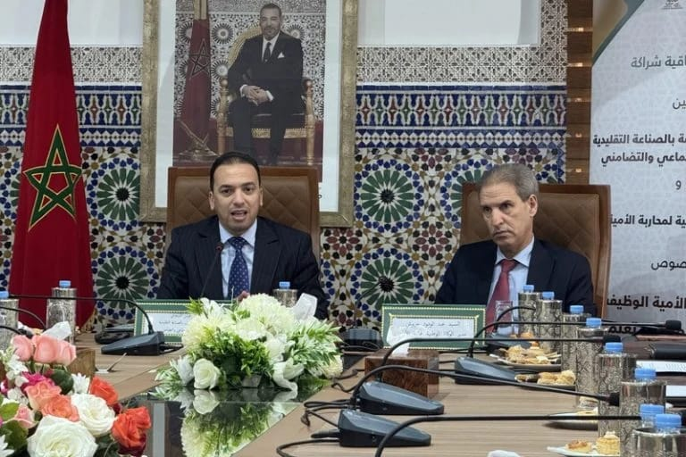 شهد مقر كتابة الدولة المكلفة بالصناعة التقليدية بالرباط، يوم الاثنين 13 أبريل 2026، توقيع اتفاقية شراكة استراتيجية بين لحسن السعدي، كاتب الدولة المكلف بالقطاع، وعبد الودود خربوش، مدير الوكالة الوطنية لمحاربة الأمية، تحت شعار “من أجل صانع متعلم”. وتطمح هذه المبادرة إلى إرساء مقاربة مندمجة تكسر القالب التقليدي لمحو الأمية، عبر ربطه المباشر بالتكوين بالتدرج المهني؛ حيث تهدف إلى تمكين الصناع التقليديين من الكفايات الأساسية في القراءة والكتابة والحساب، مع توجيههم نحو مسارات مهنية تضمن لهم التأهيل المالي والتدبير المقاولاتي، بما يرفع من تنافسية المنتوج التقليدي الوطني ويواكب التحولات الرقمية الراهنة.